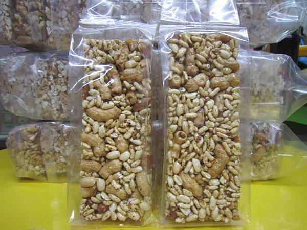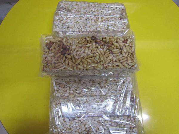 品名:芝麻花生 成分:白米.花生.芝麻.麥芽糖.砂糖.植物油 包裝:8入/包 價格100元/包